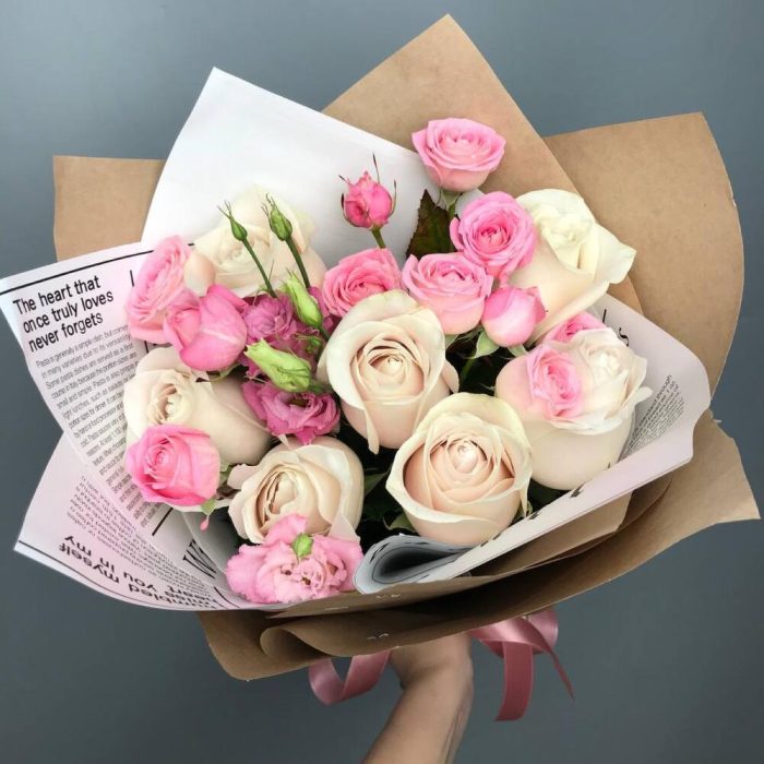Кустовые розы, Лизиантусы, Розы, Сухоцвет