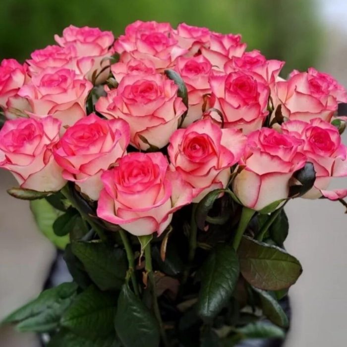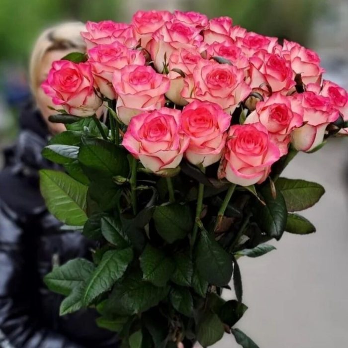 Роскошный букет из двухцветной розы Джумилия подойдёт для доставки самым любимым и дорогим людям. Наши флористы с радостью соберут, а курьеры доставят красивый букет от Вашего имени. По Вашему желанию количество может быть увеличено.