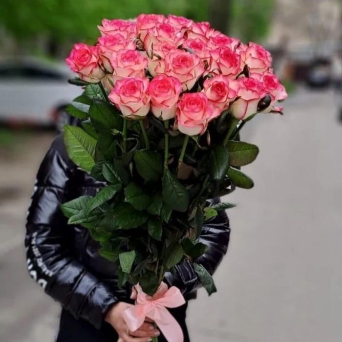 Метки: 25 роз, На свадьбу, от 4000 до 5000 руб, Роза 60 см, Розовые розы