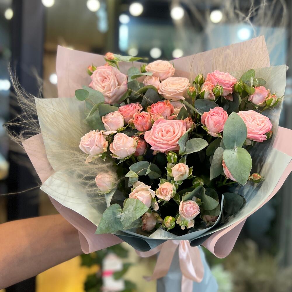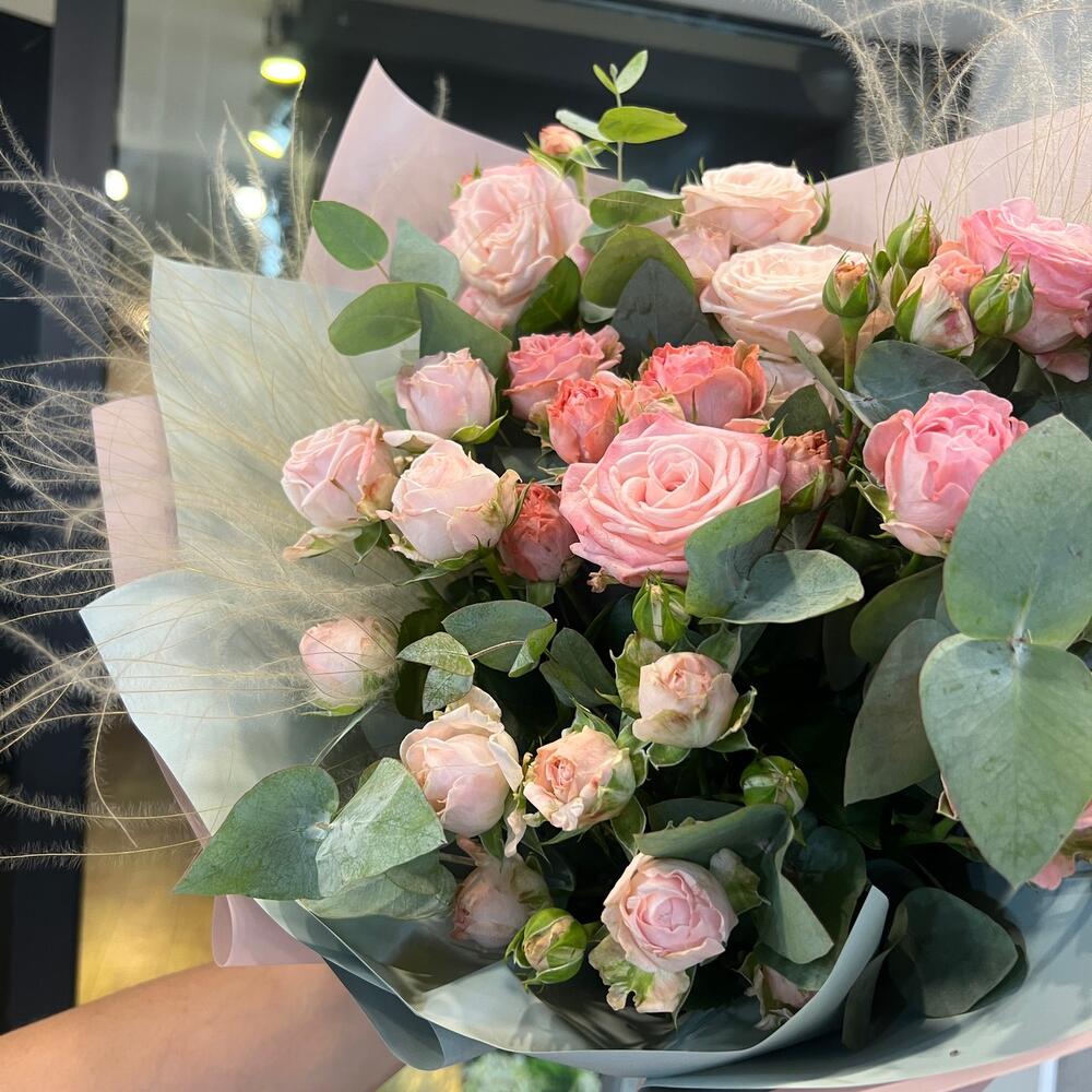 Кустовые розы, Лизиантусы, Розы, Сухоцвет
