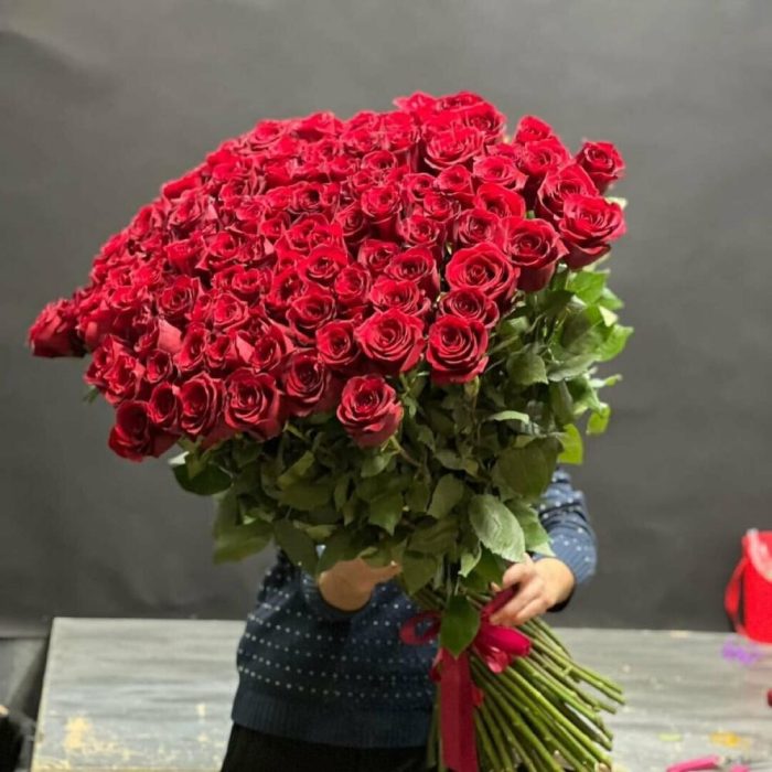 розы эквадор 80 см эксплорер – 101 шт.Лента атласная – 1 шт.