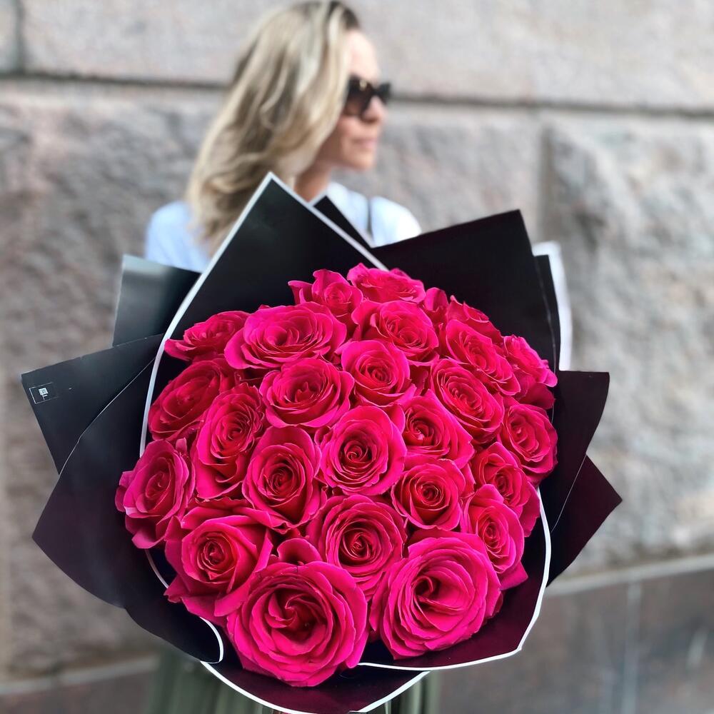 розы малиновые яркие – 25 шт.