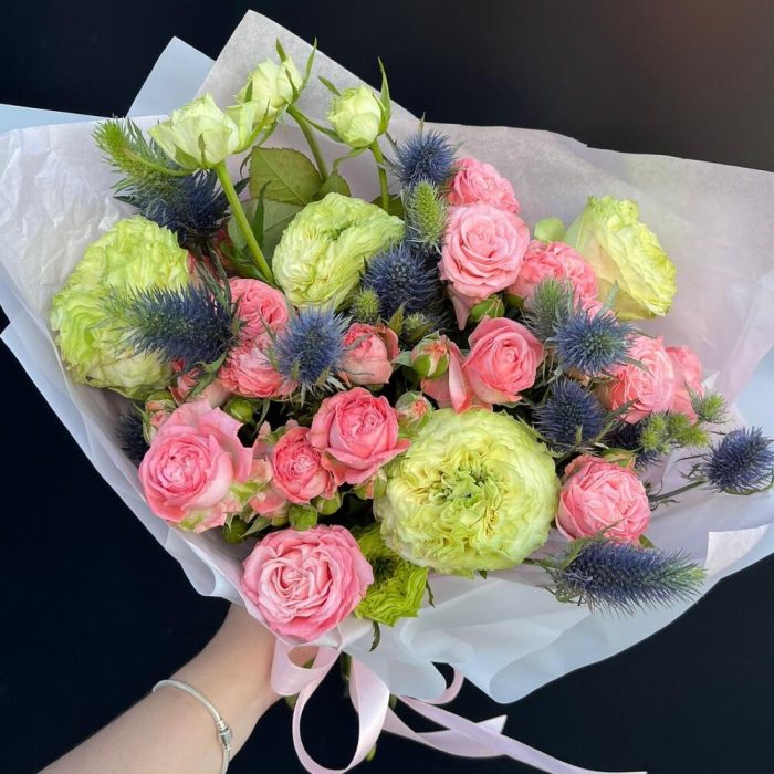 Гвоздики, Кустовые розы, Лизиантусы, Пионовидные розы, Розы