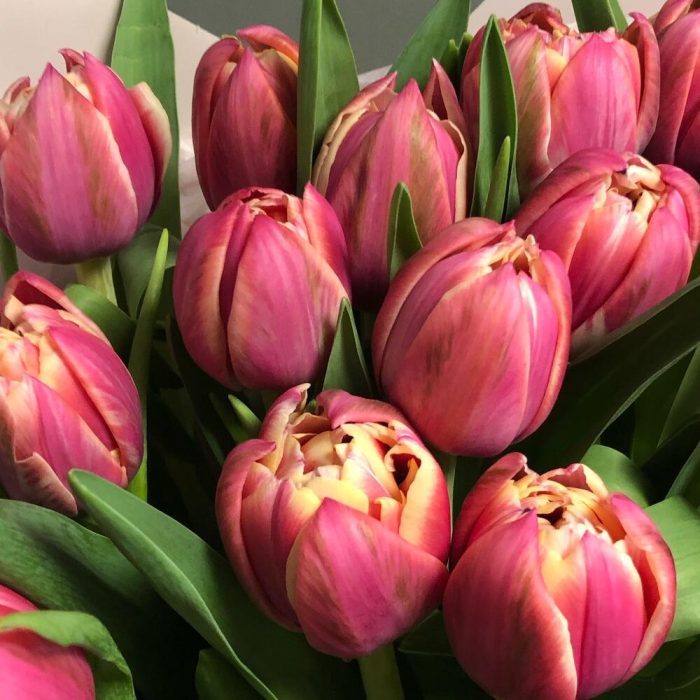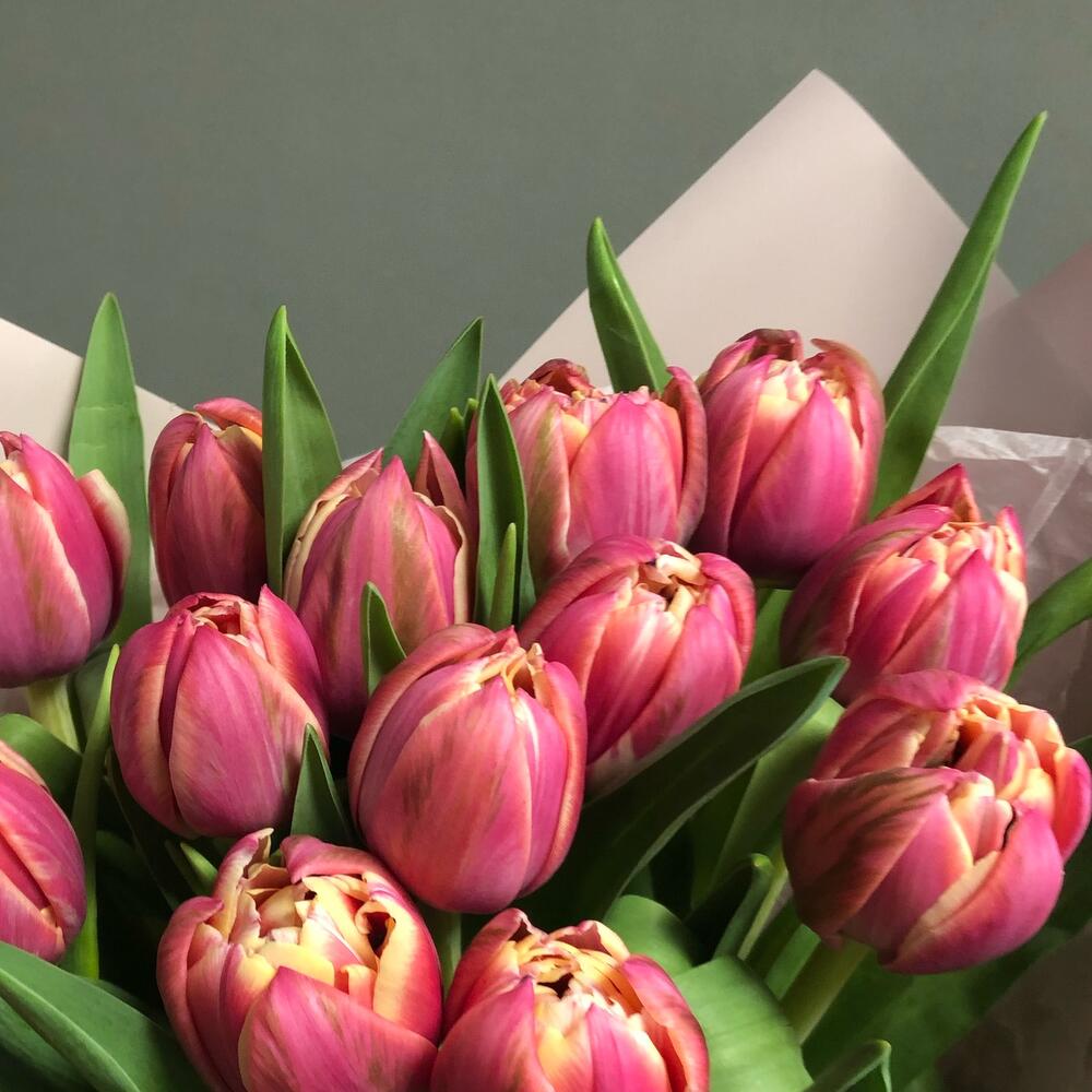 Лента атласная – 1 шт.Упаковка дизайнерская – 2 шт.тюльпан коламбус – 15 шт.